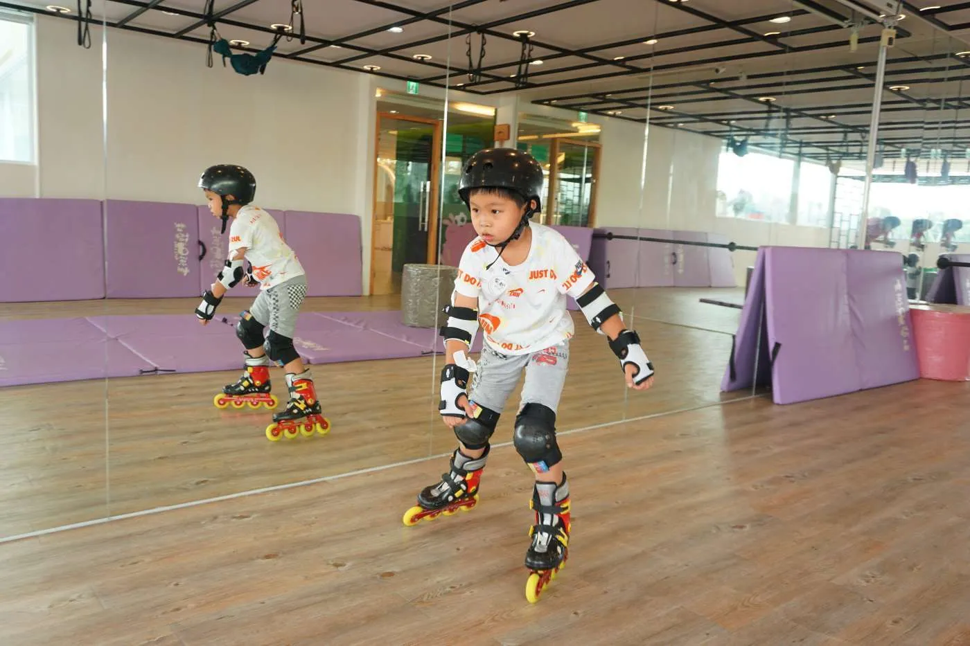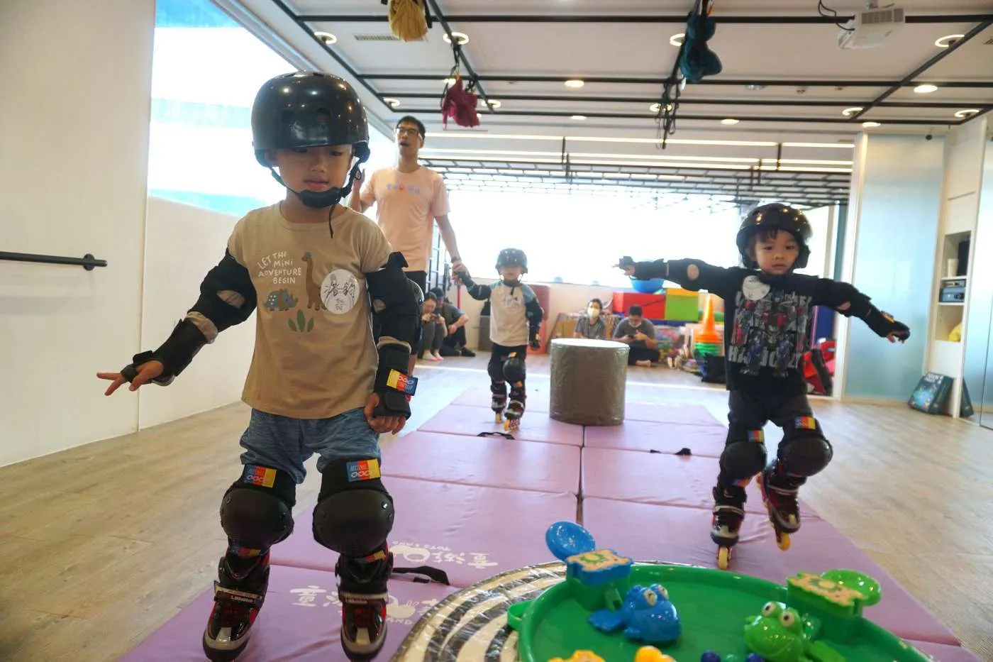 利用學習直排輪之基礎技巧來達到全身性的運動,增加幼童的平衡感及爆發力。