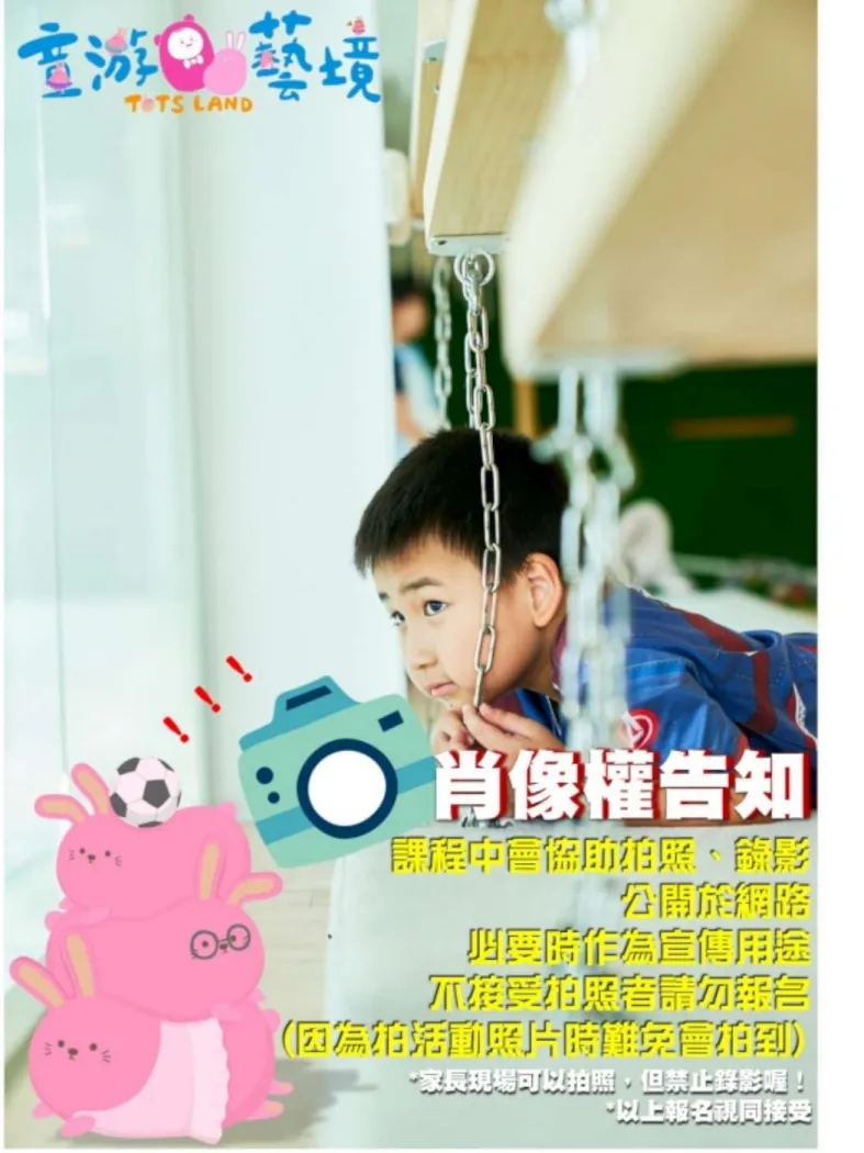 - 參加課程時,最多兩位成人入場陪同。課程期間,課程助理會拍照、錄影公開於網路作為宣傳用途,不接受拍照者請勿報名(因為課程進行中拍照,難免會拍到無法完全避開)。